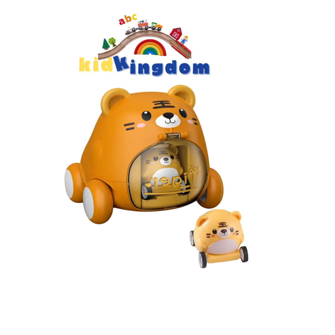 At first glance, it’s a cute animal-shaped friction car (available in tiger or dog design). But here’s the twist – press the special button and a hidden mini puppy or tiger cub car zooms out instantly!