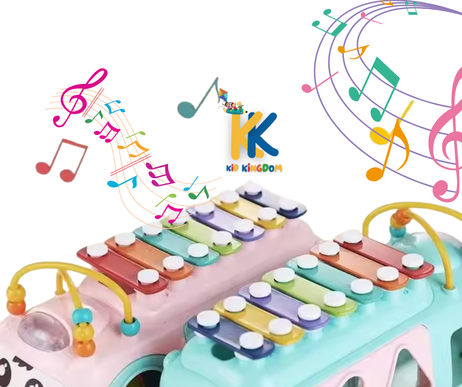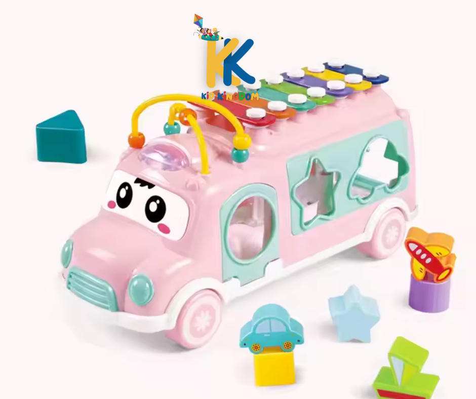 Xylophone Puzzle Bus Toy – Musical Shape Sorter with Pull-Along Wheels